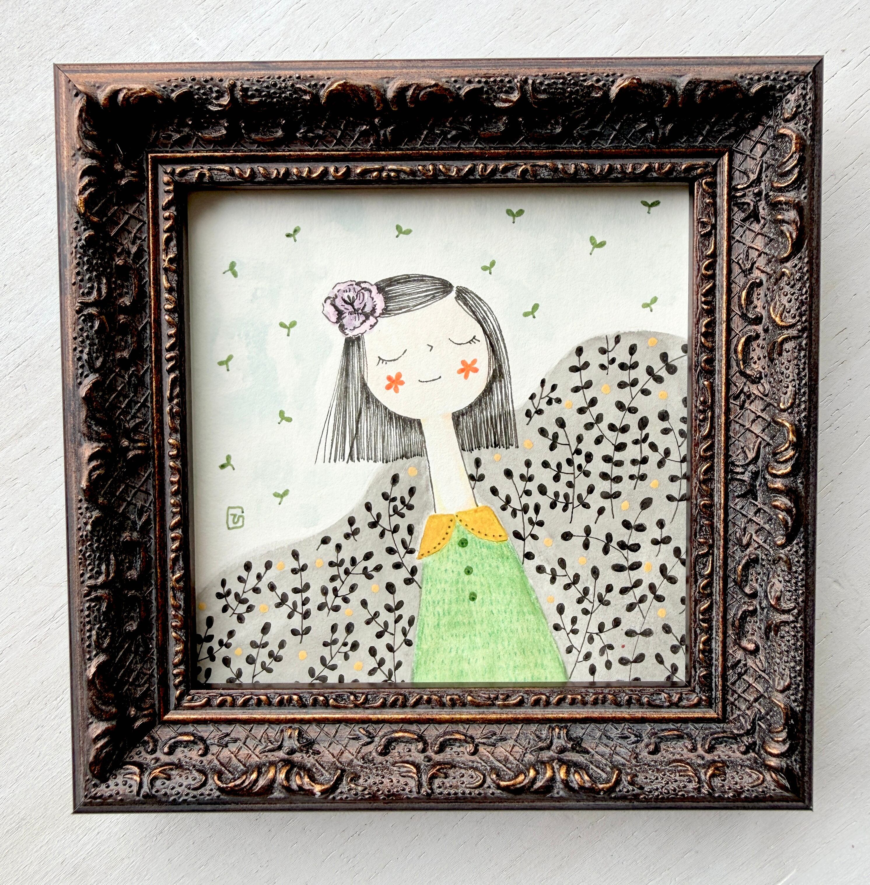 「私だけのアトリエ」シリーズ ミニ額 原画(風の中)